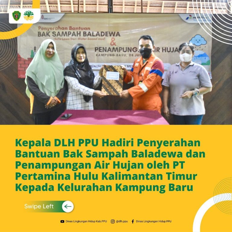 Kepala DLH PPU menghadiri kegiatan penyerahan bantuan bak sampah/tps baladewa (bata lawe dari water based mud) dan penampungan air hujan...