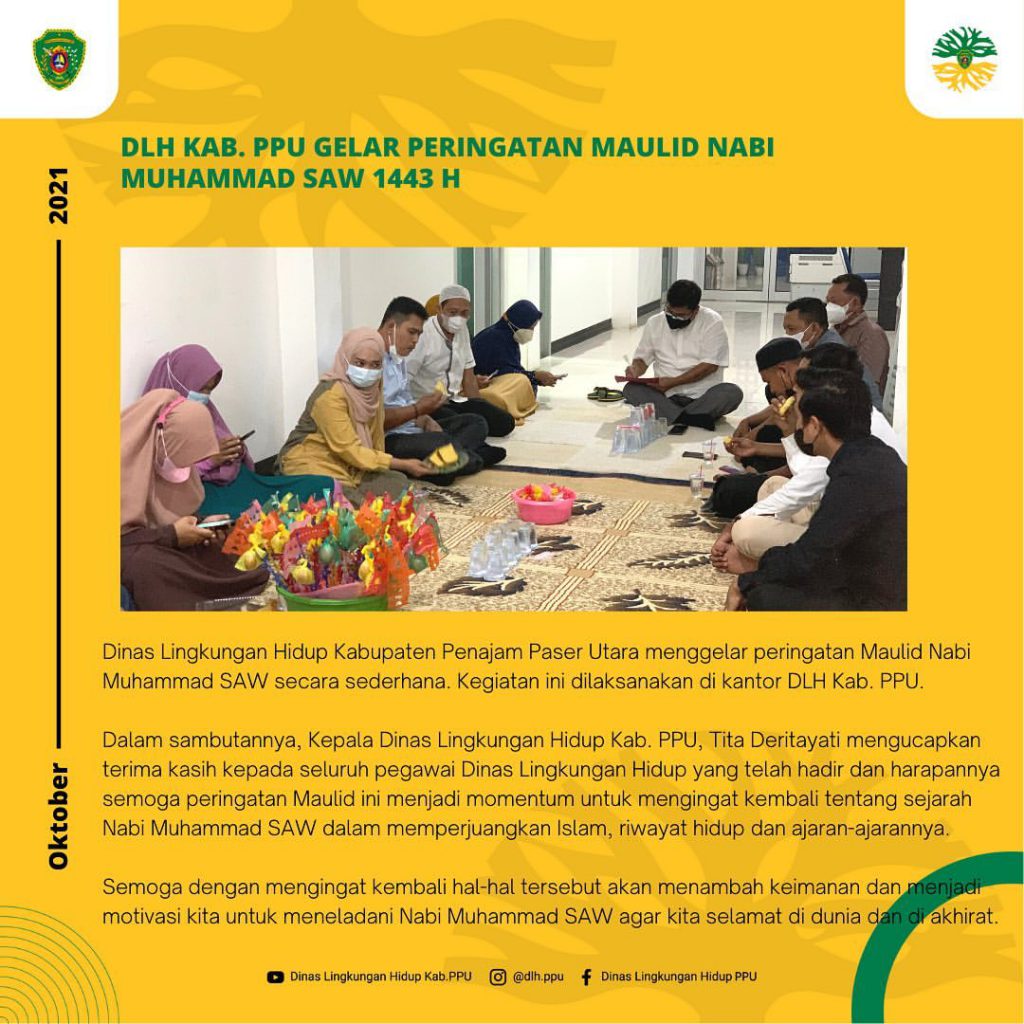 Dinas Lingkungan Hidup Kabupaten Penajam Paser Utara menggelar peringatan Maulid Nabi Muhammad SAW secara sederhana. Kegiatan ini dilaksanakan di kantor DLH Kab. PPU.