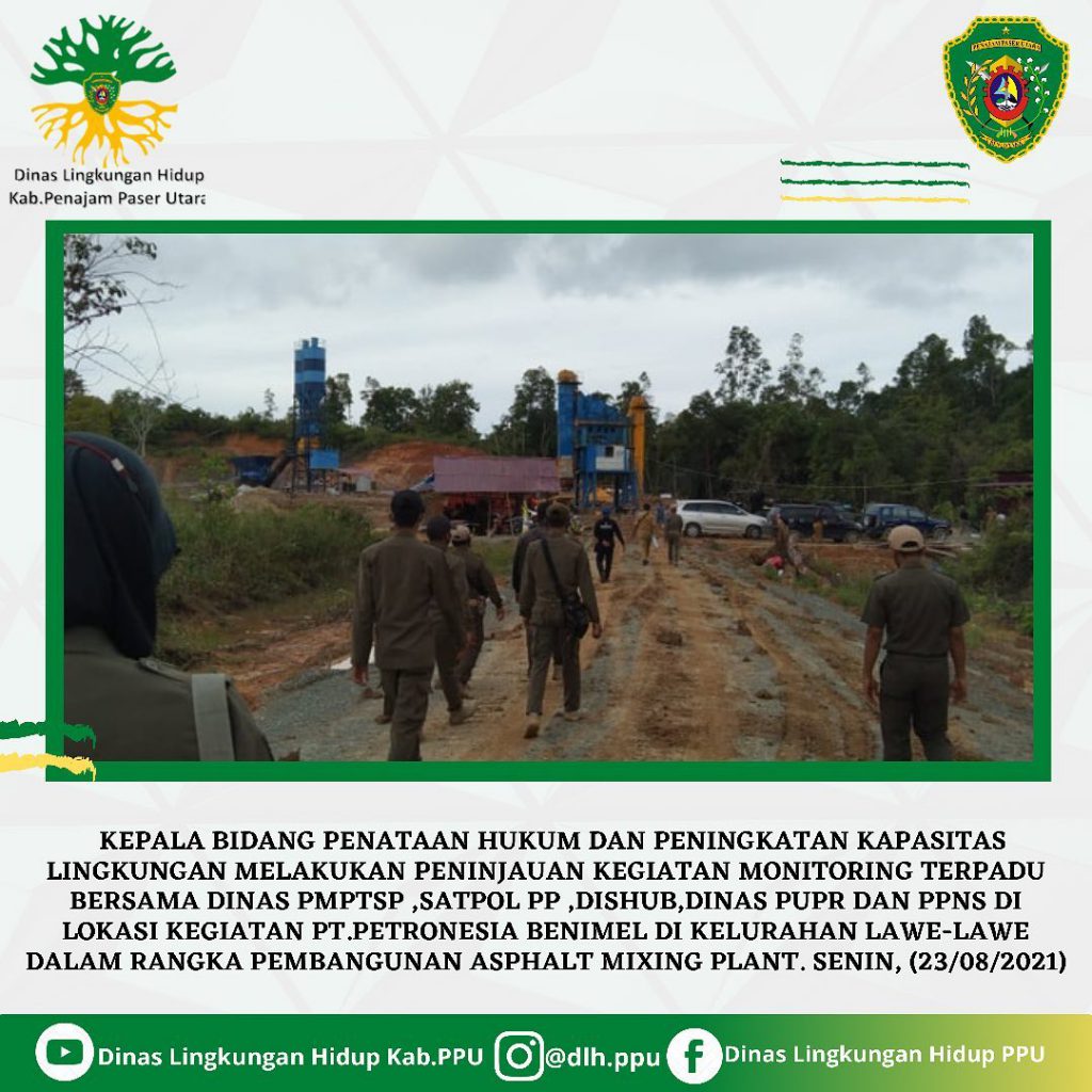 Kabid Penaatan Hukum dan Peningkatan Kapasitas Lingkungan melakukan Monitoring Terpadu Bersama Dinas PMPT, Satpol PP, Dishub, Dinas PUPR di PT Petronesia Benimel , Kelurahan Lawe-lawe
