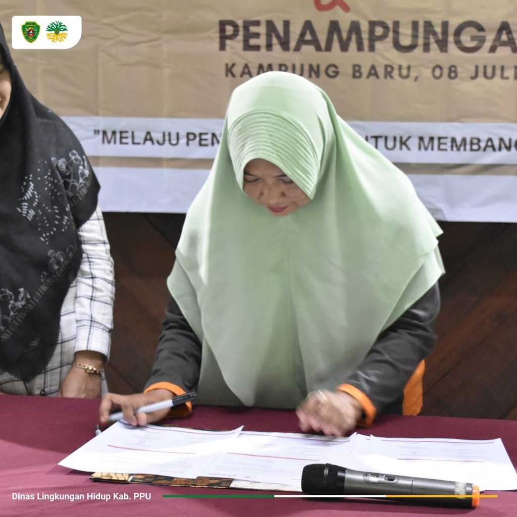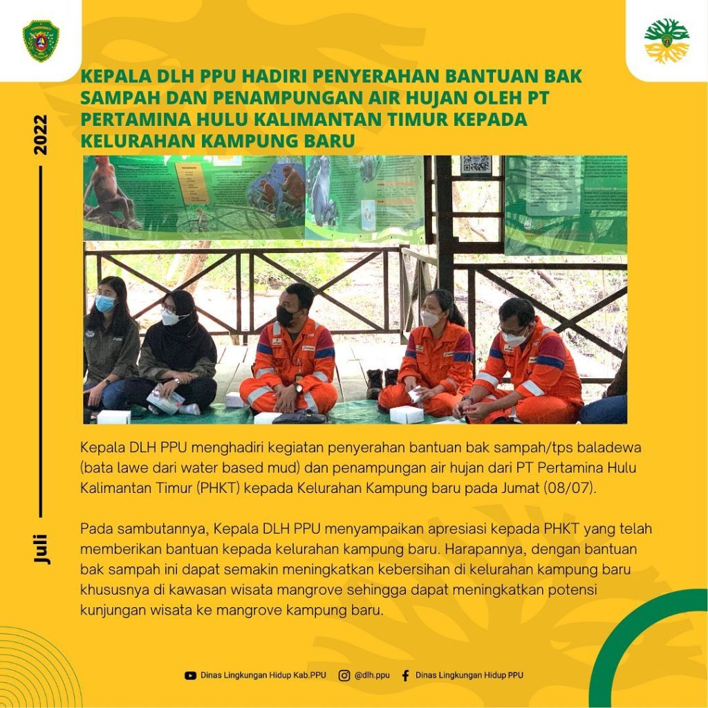 Kepala DLH PPU menghadiri kegiatan penyerahan bantuan bak sampah/tps baladewa (bata lawe dari water based mud) dan penampungan air hujan dari PT Pertamina Hulu Kalimantan Timur (PHKT) kepada Kelurahan Kampung baru pada Jumat (08/07).