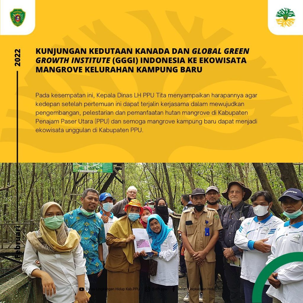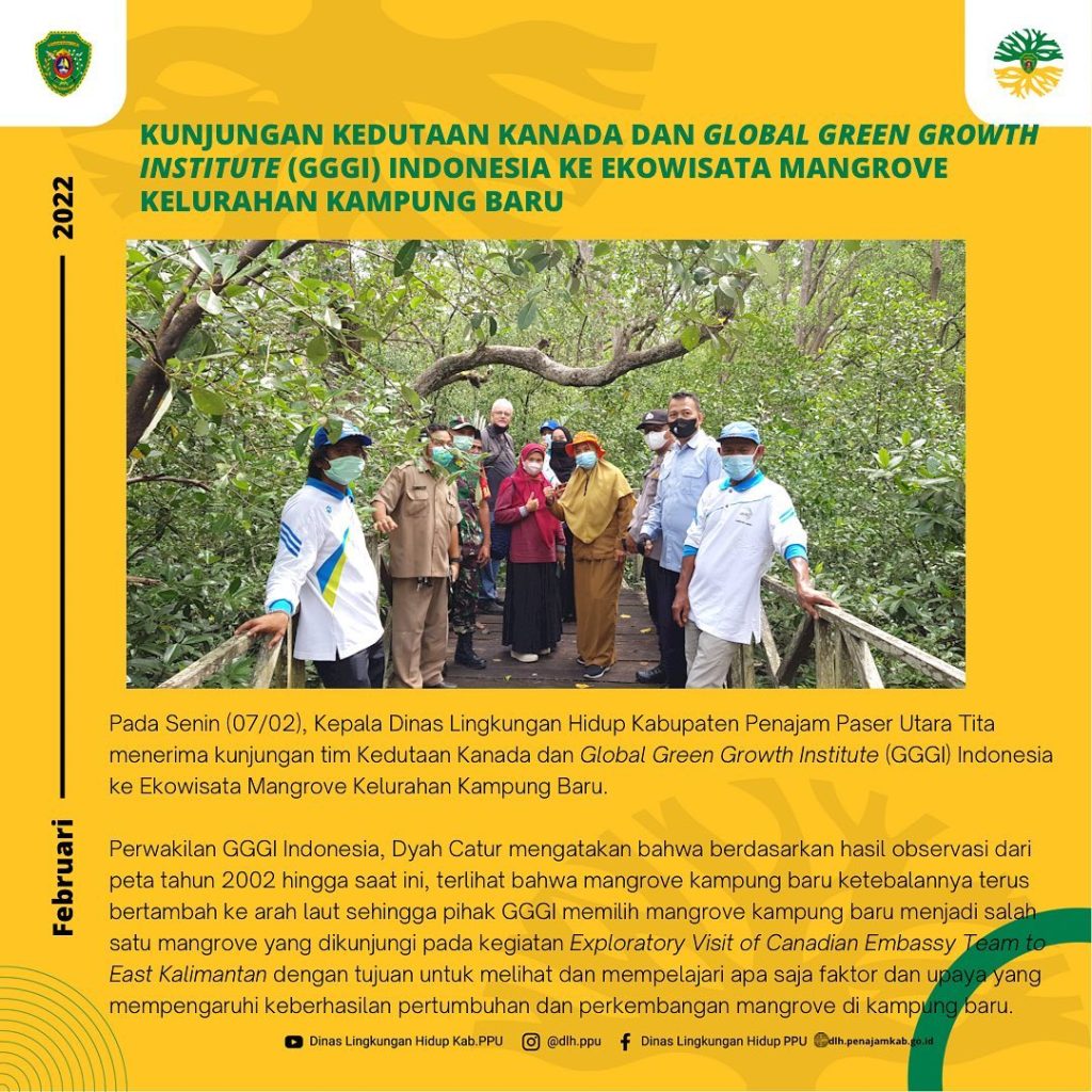Pada Senin (07/02), Kepala Dinas Lingkungan Hidup Kabupaten Penajam Paser Utara Tita menerima kunjungan tim Kedutaan Kanada dan Global Green Growth Institute (GGGI) Indonesia ke Ekowisata Mangrove Kelurahan Kampung Baru.