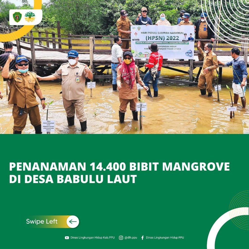 Pada Selasa (22/02) di Desa Babulu Laut Kecamatan Babulu Kabupaten Penajam Paser Utara, dilakukan penanaman 14.400 bibit mangrove sebagai salah satu rangkaian kegiatan Hari Peduli Sampah Nasional (HPSN). Kegiatan penanaman mangrove ini di dukung oleh PT Fajar Surya Swadaya.