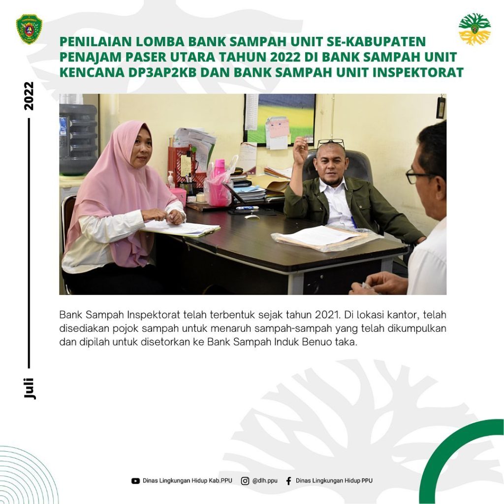Tim Juri Lomba Bank Sampah Unit Se-Kabupaten Penajam Paser Utara berkunjung ke Bank Sampah Unit Kencana DP3AP2KB dan Bank Sampah Unit Inspektorat pada Rabu (13/07).