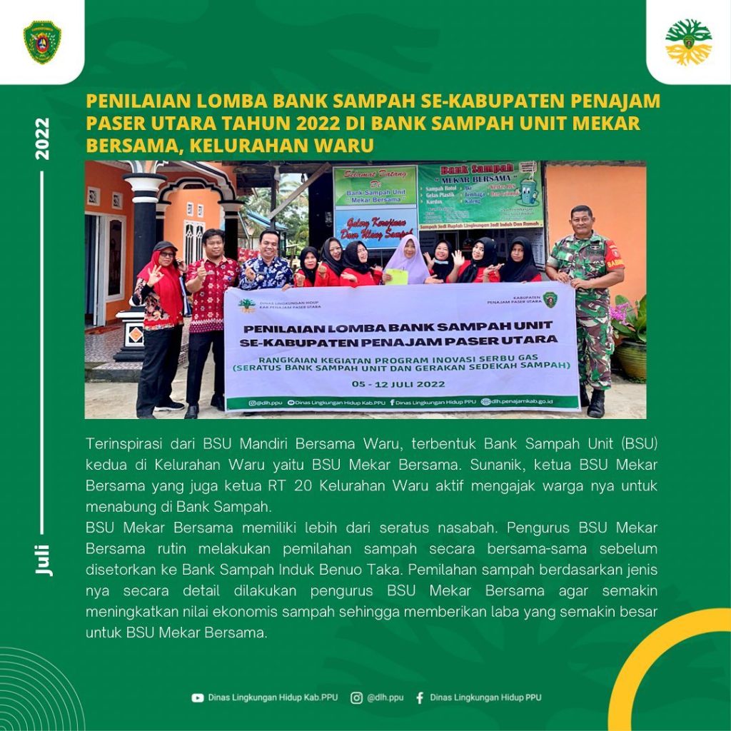Penilain Lomba Bank Sampah Se Kabupaten Penajam Paser Utara Tahun 2022 di Bank Sampah Unit Mekar Bersama Kel. Waru