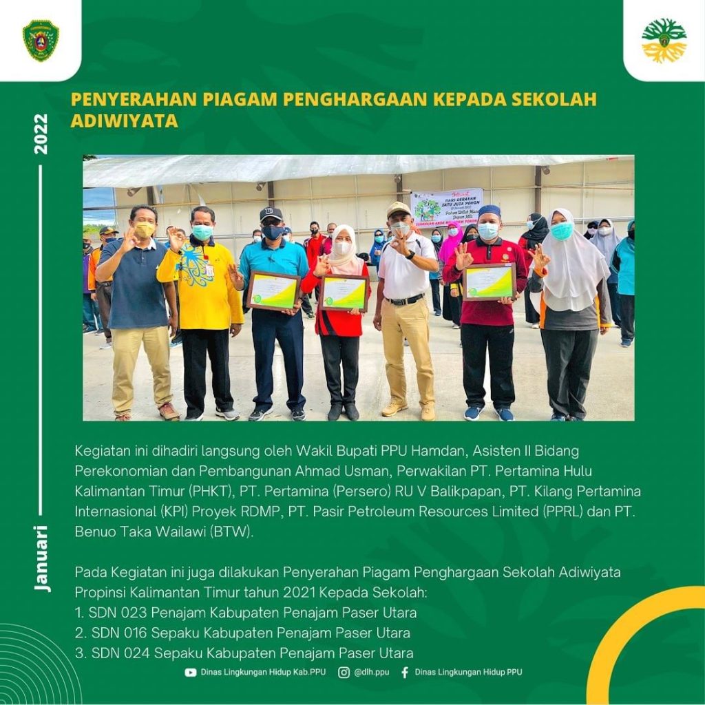 Pada Kegiatan ini juga dilakukan Penyerahan Piagam Penghargaan Sekolah Adiwiyata Propinsi Kalimantan Timur tahun 2021 Kepada Sekolah: