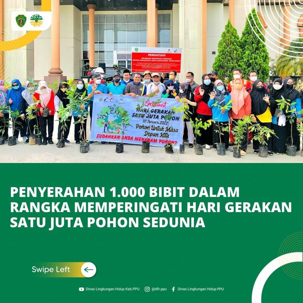 Memperingati Hari Gerakan Satu Juta Pohon Sedunia, 10 Januari 2022, Dinas Lingkungan Hidup Penajam Paser Utara (PPU) didukung oleh Pihak Perusahaan memberikan bantuan bibit kepada Sekolah Adiwiyata di Kabupaten Penajam Paser Utara.