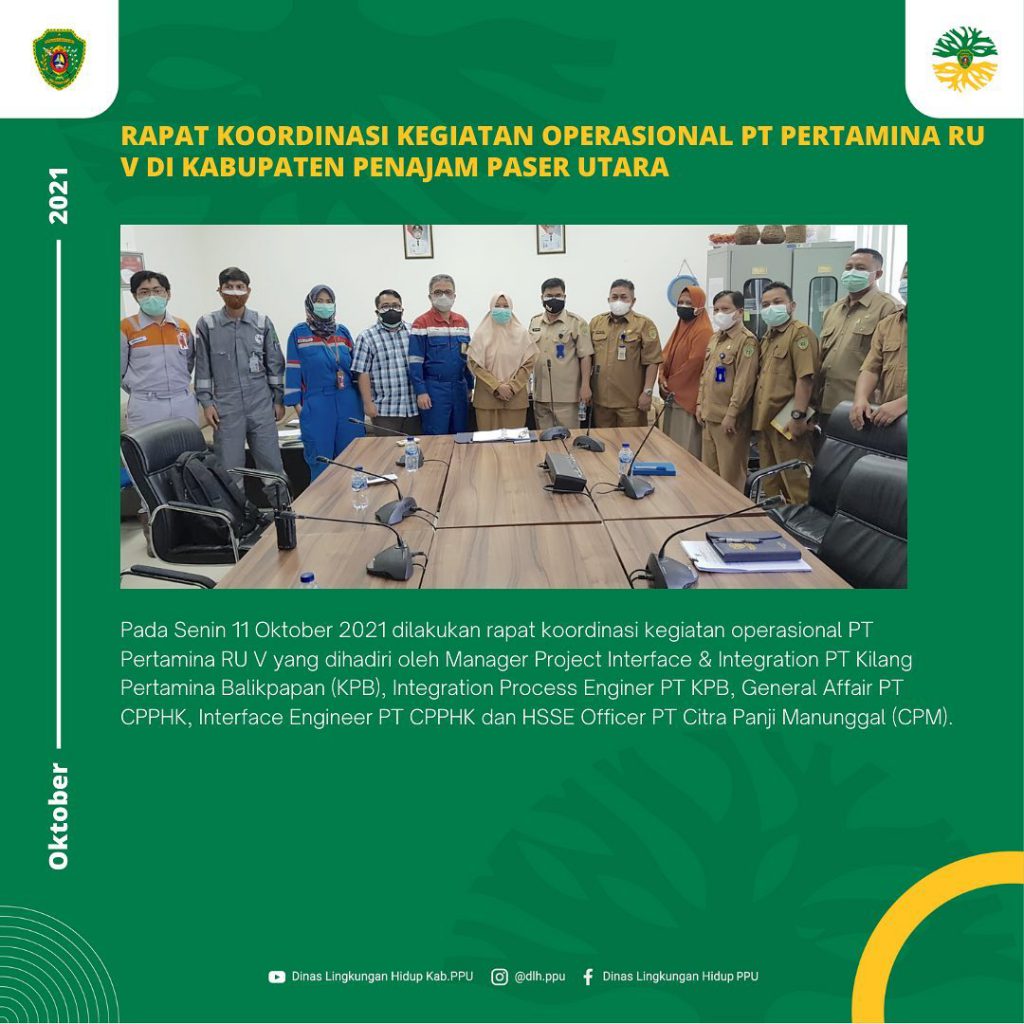 Pada Senin 11 Oktober 2021 dilakukan rapat koordinasi kegiatan operasional PT Pertamina RU V yang dihadiri oleh Manager Project Interface & Integration PT Kilang Pertamina Balikpapan (KPB), Integration Process Enginer PT KPB, General Affair PT CPPHK, Interface Engineer PT CPPHK dan HSSE Officer PT Citra Panji Manunggal (CPM).