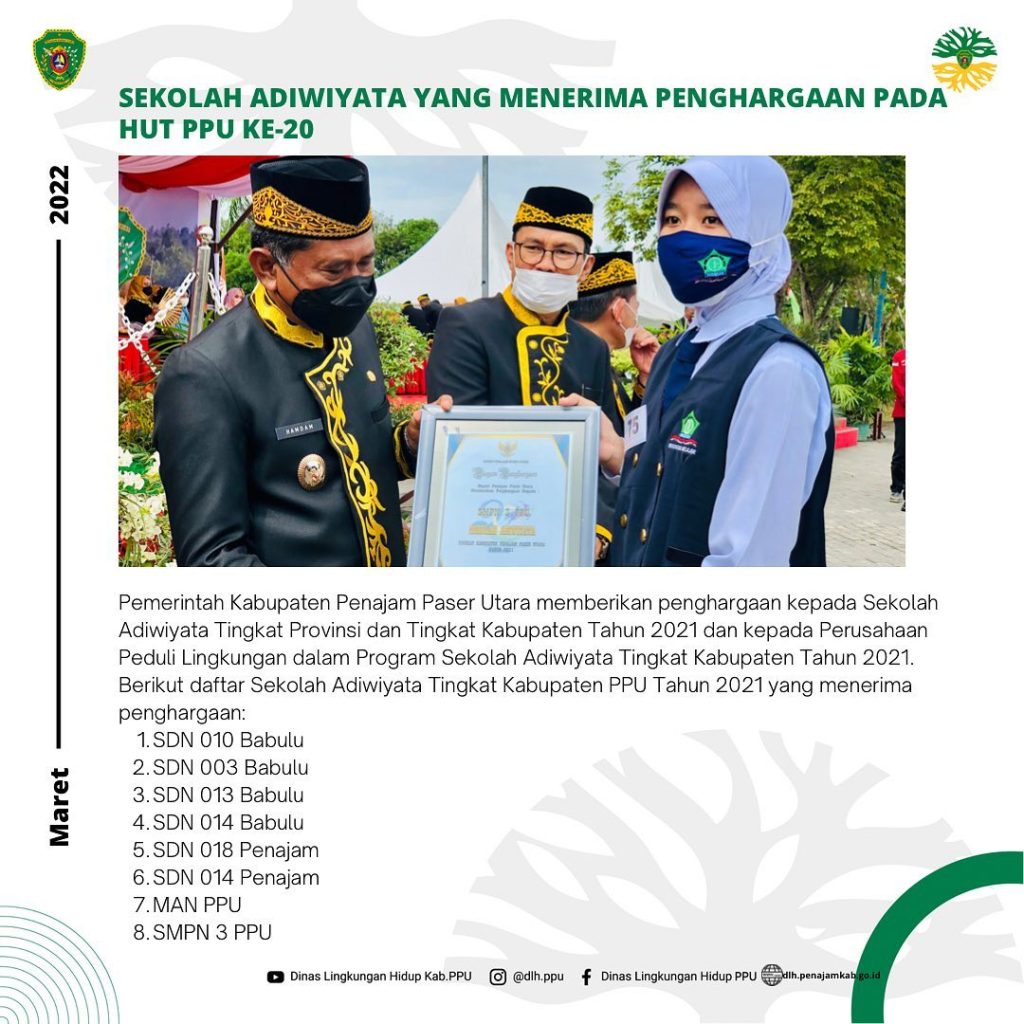 Berikut daftar Sekolah Adiwiyata Tingkat Kabupaten PPU Tahun 2021 yang menerima penghargaan: