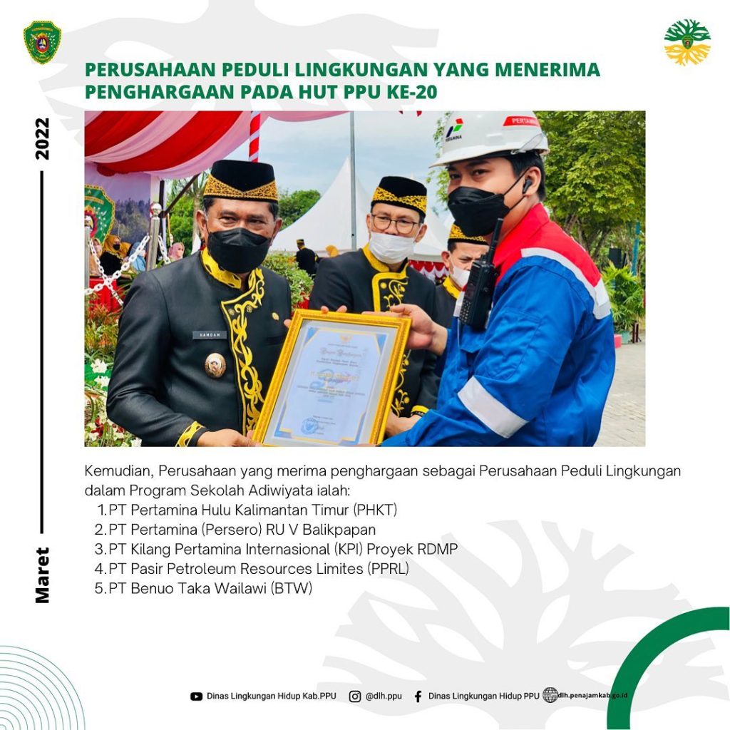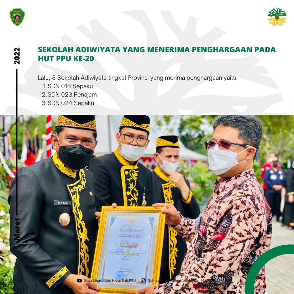 Pemerintah Kabupaten Penajam Paser Utara memberikan penghargaan kepada Sekolah Adiwiyata Tingkat Provinsi dan Tingkat Kabupaten Tahun 2021 dan kepada Perusahaan Peduli Lingkungan dalam Program Sekolah Adiwiyata Tingkat Kabupaten Tahun 2021.