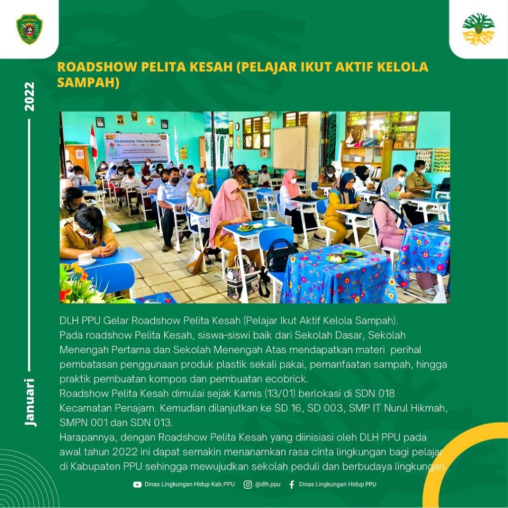 Harapannya, dengan Roadshow Pelita Kesah yang diinisiasi oleh DLH PPU pada awal tahun 2022 ini dapat semakin menanamkan rasa cinta lingkungan bagi pelajar di Kabupaten PPU sehingga mewujudkan sekolah peduli dan berbudaya lingkungan.